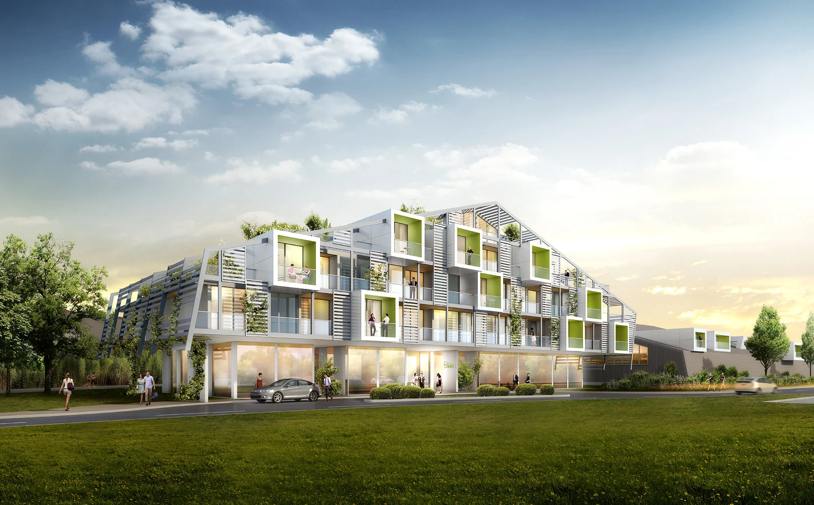 Propos : Au sommet, en amont, sur les cimes, devant le vide et la vue, le challenge d’une construction dans le pente pour rendre un ensemble de petit collectif agréable. La recherche de surface planes préservant la vue et la lumière. S’intégrer dans la canopée par une résille végétale qui filtre la lumière et préserve la fraicheur. S’implanter sans détruire, juste au-dessus de la pente.